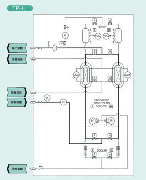 O2、H2O 透过触媒与吸附剂作用达到超低浓度。